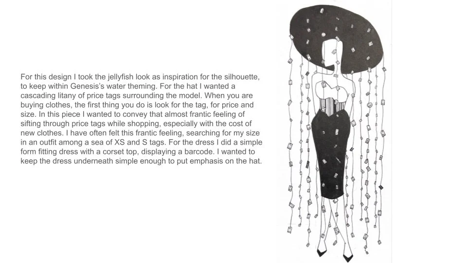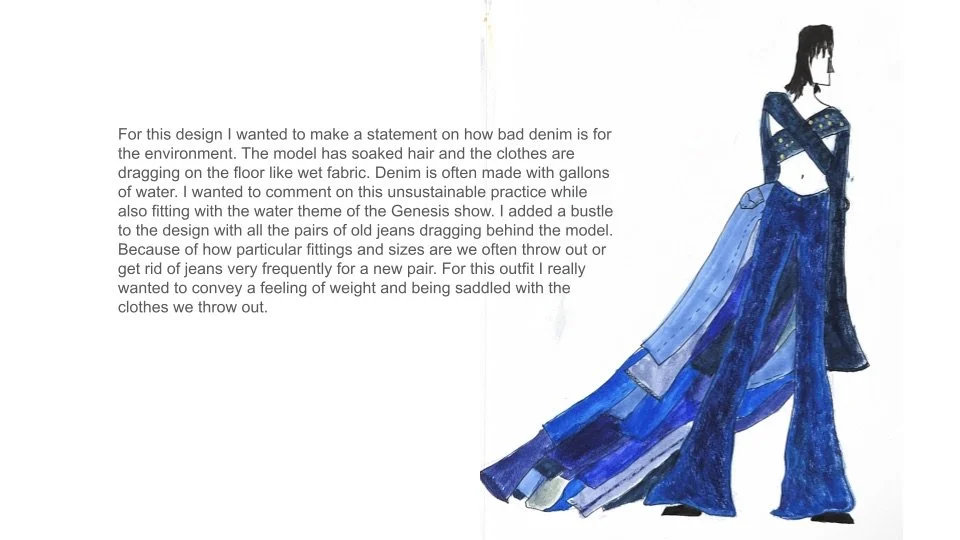 Created two garments for the 2025 Genesis Fashion Show. Initial concepts created with watercolors. Final garments sewn and sourced.